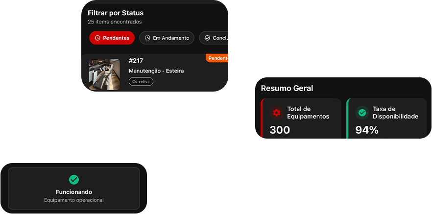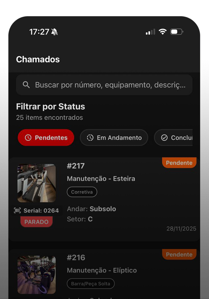 Consigo ver o status de cada equipamento e priorizar manutenções sem perder nada.”