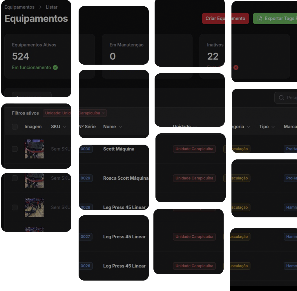 Com o Gymtag, você mantém o controle total das manutenções, acompanha seus equipamentos em tempo real e organiza toda a operação de forma simples e eficiente.